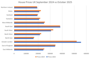 Despite some modest house price growth in certain areas, key market indicators show a clear deceleration across the majority of the UK. Data from late 2025 reveals: